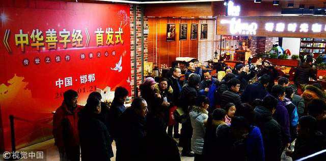 市民在邯郸市新华书店踊跃购买《中华善字经》。 图片来源:张魁星/