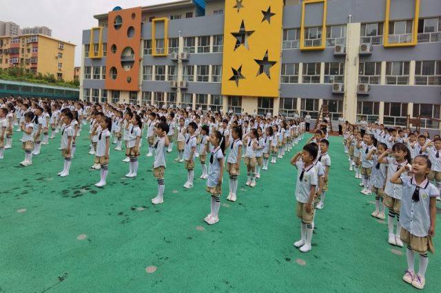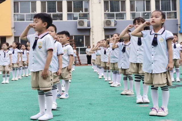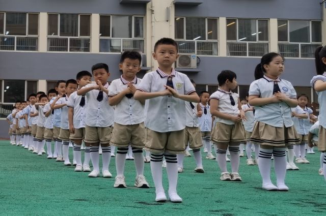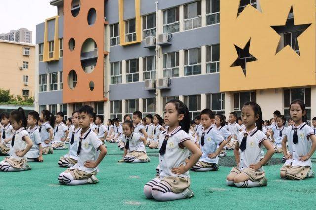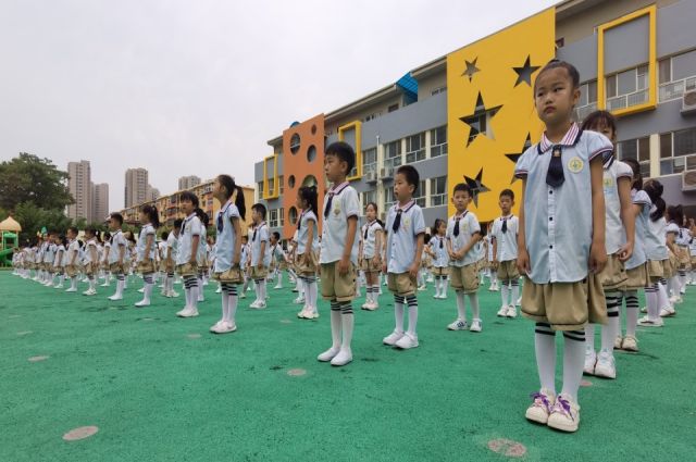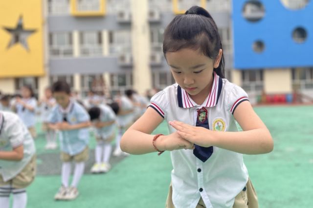 2023年6月28日上午,市政府幼儿园400余名幼儿在操场上咏读《中华善字经》。